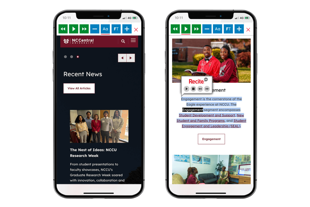 North Carolina Central University (NCCU) is a top-ranking southern regional university and historically black university with a diverse student body of more than 8,000 scholars that offers Bachelor’s Degrees in 100 disciplines, Master’s Degrees in more than 40 areas, and a Ph.D. in Integrated Biosciences. In 2024, NCCU introduced the Recite Me Assistive Toolbar on its website to create a more inclusive experience for all students.